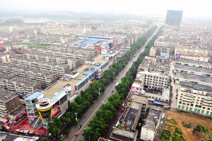 小图:10年前,站在高处俯瞰周口市区中州路,道路两旁的楼房最多有五六层高。(朱星光 摄)