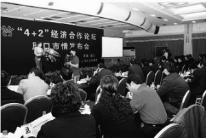 旨在推动豫商投资家乡、振兴豫南的“4+2”经济合作计划于4月4日正式启动。作为首站的周口于4日下午在周口饭店举行市情发布会。省政协副主席陈义初,省政协副秘书长王伟平,省政协经济委员会主任赵钟恒,省政协经济委员会副主任方刚、陈钢印、乔百芳、贾保顺等,市领导毛超峰、徐光、余学友、穆仁先、王宇燕、杨海震、姚建华、石敬平等出席市情发布会。