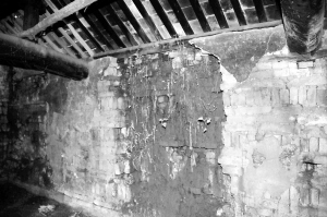 推开铁门,记者看到,在新房西侧有座不起眼的老房子。这座老房子青砖青瓦,共有3间,长约9米,宽约5米,墙体厚约0.6米。屋内一片黑暗,墙壁已经裂开,特别是北面的墙壁,已出现两个大洞,曾用砖修补过。李广明指着老房子说,这是祖上留下来的,是明代建筑。“一到雨天,外面下大雨屋内下小雨。”李广明担忧地说,照此下去,老房子很快就会倒塌。