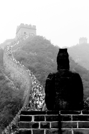 7月26日,中外游客游览北京居庸关长城。进入三伏天的北京城持续高温,但北京各个旅游景点的中外游客明显增加,一些公园出现游客爆满的场面。新华社发