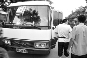 当天是周末,执法人员先后对市区多家旅行社和户外组织的旅游客车进行检查。19时,在周口火车站广场附近,两辆客车上坐满了准备外出旅游的人。市交警支队一大队交警在对其中一辆悬挂黄色车牌“豫P00003”的车辆进行检查时,发现该车机动车行驶证显示是非营运车辆,这辆客车根本不具备营运载客的资质,属于非法营运,且这辆车还私装警灯。