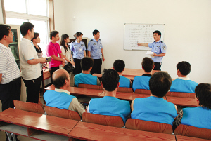 当日10时,记者和被拘人员的家属走进项城市拘留所,看到管教人员正在集体教育室给8名被拘人员讲解“八荣八耻”(如图)。半个多小时的集体教育结束后,记者和因故意殴打他人被依法行政拘留7日的贾某攀谈起来,“以前,我认为到了拘留所只能天天呆在小黑屋里熬日子,进来后才知道,这里不但可以看电视、看书,还能到室外活动。”贾某说,管教人员经常找他聊天谈心,让他在感动的同时还悟出许多做人做事的道理。
