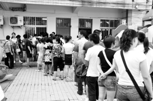 8月21日,在周口市区六一路的市直幼儿园内,为孩子报名的家长排成长队。据市直幼儿园崔园长介绍,许多家长夜里就开始排队,但因多方面条件限制,他们只能接收200名幼儿,确实不能满足所有家长需求。对此,园方表示很遗憾。
