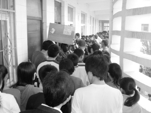 8月31日,在郸城县一中学教学楼里,走廊上挤满了前来报道的学生。当日,该县中小学校开学,沉寂了一暑假的各校又重现热闹景象。晚报记者 徐松 摄