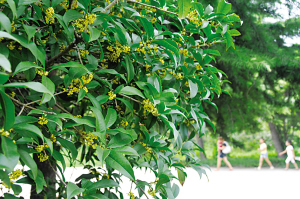 昨天,周口人民公园内,行人从枝头挂满了一簇簇金黄花的桂花树前走过,扑鼻花香让人心旷神怡。连日来,公园里的桂花几乎是一夜间开放了,满园香气扑鼻,引得不少市民驻足欣赏、留影。