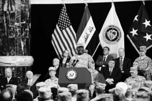 9月1日,在伊拉克首都巴格达国际机场附近的驻伊美军基地,驻伊拉克美军新任最高司令奥斯汀在驻伊美军任务转换仪式上讲话。当日,美国副总统拜登主持了美军任务转换仪式,宣布2003年起的“自由伊拉克行动”正式被“新黎明行动”取代。 新华社发