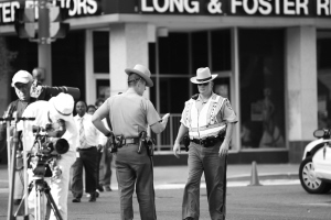 9月1日,在美国马里兰州蒙哥马利县,警察在劫持人质事件现场警戒。