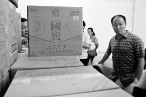“你看,这些‘国窖1573’外包装箱都是二次封箱,痕迹很明显,每箱内的几瓶酒生产日期均不一样。”泸州老窖股份有限公司打假员说,这些在我们酒里是绝对不允许的,种种迹象表明这些酒涉嫌假酒。