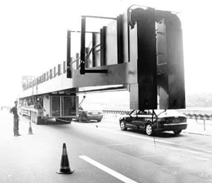 10月7日8时25分,一辆红色大货车颤颤悠悠开到石安高速(河北省内石家庄至临漳县)南高营桥段,该车车身长约16米,竟装载23米长的货物,货物超出车身7米多。当日11时40分左右,民警又在石安高速西兆通服务区段发现,一辆身长17米的半挂货车,其尾部货物架空长约6米。司机明知如此上路危险且属于违法行为,但为了国庆假期期间“赚点外快”,还是冒险上了高速,结果被民警查获。(中青 荐)
