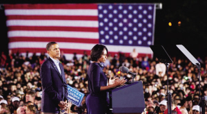 美国总统奥巴马10月17日携妻子出动,为11月2日的中期选举拉票(下图)。这次是自2008年竞逐总统后,奥巴马再次与米歇尔同场,为民主党造势,据信他希望借太太的“人气”来争取更多选票。报道称,美联社最新的民意调查显示,2008年投票支持奥巴马的选民,有四分之一将会转投共和党;近四成的受访者对奥巴马的施政表示失望;只有三成人认为,奥巴马能够履行竞选时“求变”的承诺;五成受访者表示,现在就对奥巴马的政绩做出评价,为时尚早。