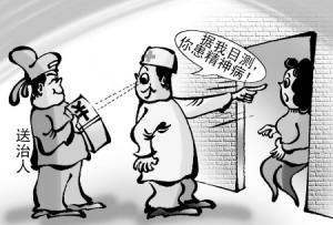 华声在线10月25日报道,2009年,湖北气象局职工邱小卫因多次上访被强行送往精神病院,入院之前,医院并没对其进行详细检查,而是对其进行了“目测诊断”即判定邱小卫患有精神病。在精神病院期间,邱小卫健康状况恶化,曾经试图自杀。漫画/陶小莫