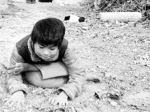 河南驻马店市雷寨村78岁的李道荣身体每况愈下,4年前,儿子因病去世,儿媳离家出走,撇下脑瘫的孙女思思与其相依为命,村民介绍说“她俩日子苦得睁不开眼”。为使孙女不跑丢和在村中闯祸,李道荣用一根粗绳将孙女拴住(上图),粗绳一头系着石碾,至今已长达3年之久。13岁的思思智力还不如3岁孩子,生活完全不能自理。老人说:“拴住她的身,痛在我的心!”