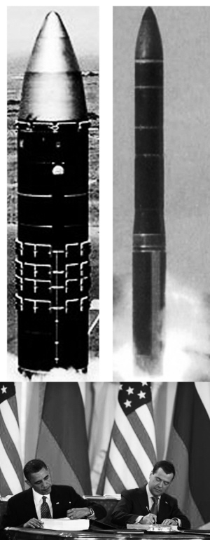 奥巴马和俄罗斯总统德米特里·梅德韦杰夫今年4月在捷克首都布拉格签署这份核裁军条约(左图),以代替去年12月到期的《削减和限制进攻性战略武器条约》。参议院外交委员会已批准这份条约,但还需全院表决。根据美国宪法,总统签署的国际条约必须经参议院三分之二多数批准即需要67张赞成票才能生效。不少共和党参议员先前不是表示反对,就是开条件“漫天要价”。