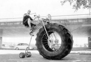 日前,荷兰一名艺术专业的大学生沃特从朋友那里收集来钢管、自行车组件和拖拉机轮胎等各式零件,拼装成了一辆450公斤重的巨大自行车,并把它骑到大街上。(羊晚)