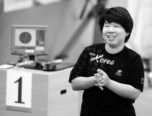 原本,金闰美参加25米和10米手枪两个项目。后来,因为25米手枪的比赛,扣扳机的声音太大,影响胎儿的成长,她不得不放弃了这个项目,专攻发声小的10米手枪比赛。即使这样,如果练的时间长一点,她还是觉得十分累。所以,金闰美在韩国队很特殊,她每天只练1个多小时,远远少于其他队友。