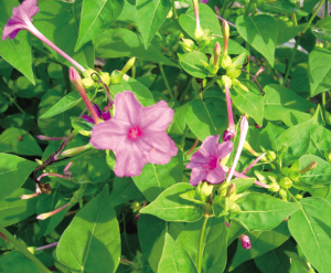 有了晚饭花,奶奶做饭就不用看天了。每到傍晚,小喇叭一吹,奶奶就会往厨房里钻。很快,屋顶上就会有袅袅的炊烟升起。天一点点暗下来,小狗摇着尾巴往家跑,绕着食盆打转,鸡也开始接二连三地往树上飞,准备就寝。这时,安静的村庄突然热闹起来,荷锄归家的乡人话着农事,老牛幽缓低沉地叫着,驴兴奋地打着响鼻打滚,猪嗷嗷催食,加上小孩子的笑闹,为晚饭花花开做着鲜活的背景。吃过饭,奶奶就会搬出一张小竹床,在晚饭花的香气中慢慢摇着蒲扇,给我讲老辈儿传下的故事。絮絮叨叨中,夜,就慢慢地上来了……二十多年后,看汪曾祺老先生写的《晚饭花》,看到王玉英坐在浓绿浓绿的叶子和乱乱纷纷的红花之前时,我脑子里浮出的,却总是奶奶的面容,黧黑的脸,沟壑纵横,带着慈祥的笑。