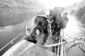 “义渡”第三代摆渡人万其珍将船划向对岸(11月17日摄)。