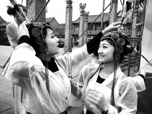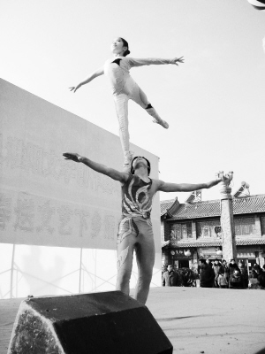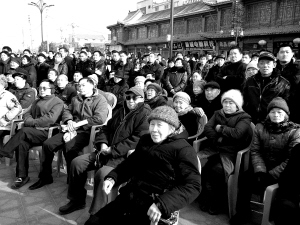 在鹿邑县“送文艺下乡”演出现场,女演员们虽然衣着单薄,但是受现场观众热烈的气氛感染,她们在严寒中表演非常投入。