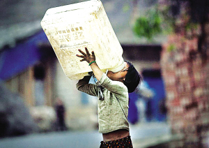 2010年春,西南大旱。 2010年4月6日,贵州省黔西南州贞丰县沙坪乡者砍村,一个小孩在打水的路上,喝完桶底最后一滴水。