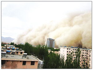 2010年5月14日,青海格尔木市郊外,一股超强沙尘暴突然袭来。今年入春以来,青海省大风天气屡有发生,为30年来同期最多的一年。