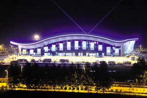 2010年落成的周口市体育馆在夜色中流光溢彩,它已成为周口人健身、娱乐、休闲的好去处。