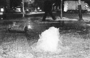 当天21时许,记者路过商水县行政路和新城路交叉口时,突然看到街头原本竖立的消防栓倒在了地上,断口处喷出的水柱约有一尺多高(如图)。水流大量喷射而出,一直流到了马路上,形成积水。不少过往市民连声叹息自来水白白流失太浪费了,有人甚至回家拿来桶和盆接水备用。见此情景,记者急忙拨打了自来水公司的抢修电话。20分钟后,抢修人员赶到现场关闭了消防栓水阀。有知情者称,这个消防栓是被一辆疾驶而过的轿车撞断的,司机已逃之夭夭。