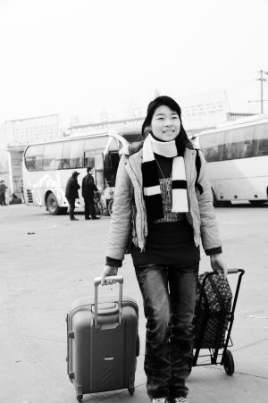 昨天上午10时许,在淮阳汽车西站,牛翠丽满脸微笑走下一辆客车(下图)。虽然辗转坐了17个小时的火车和客车,却看不出她有丝毫的疲惫。“到家的感觉真好!”牛翠丽告诉记者,她从广州回来,“不到一天就到家了,今年坐车挺顺的。”