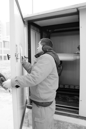 太昊中路,一处机关办公楼前,巡查员张师傅打开了天然气调压柜的门,先是伸头朝里面闻了闻,然后从工具箱中拿出检漏仪在里面测试了一下。确定没有问题后,张师傅从兜里掏出水笔,在柜门后签上了自己的名字和巡查时间,然后赶赴下一个巡查点。