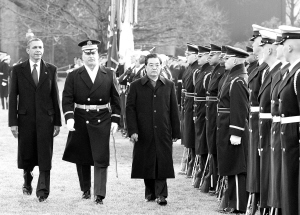 胡锦涛主席出席奥巴马在白宫举行的欢迎仪式。 新华社发