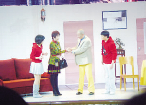 演出最出彩的是,蔡明手拿一个喷筒,在借来的房间里大大地写了一个“拆”字。另外,演出结束,四人还在一段夏奇拉的歌曲中热舞起来。其中精彩的台词有,“地铁多挤啊,还不把我未来的孙子挤成了孙子!”“你漫长的脸上写满了诚实!”“你一个养猪的怎么干出狐狸的事呢?”“我爸领带系得太紧,脑袋有点缺氧!”“我要找个有房的男友,你去找个不要房的丈母娘吧!”