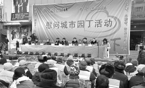 昨天,由爱心人士组成的“道德公社”成员为鹿邑县400多名环卫工人发放了4万多元的御寒物品。晚报记者 侯国防 摄 线索提供 蒋保庆 马涛
