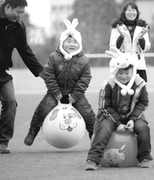 1月26日,孩子们在参加趣味运动会。当日是农历小年,安徽省淮北供电公司与社区联合举办“兔娃迎新年趣味运动会”,吸引众多家长带着孩子参加,在游戏和运动中欢度小年。新华社发