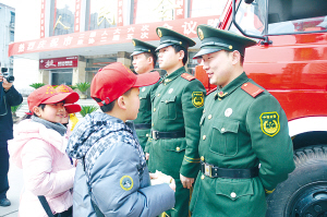 采访保障两会召开的消防人员
