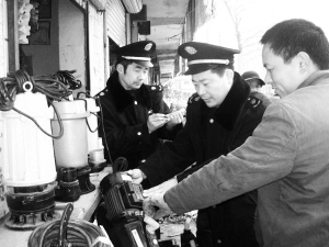 昨日上午,项城市工商执法人员对待售的水泵进行检查。