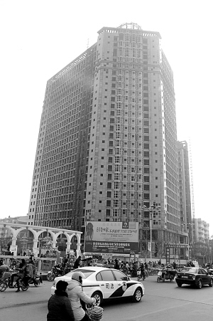 目前,2010年我市第一高楼——主体已经已经竣工的易天国际广场正进行外挂大理石、玻璃幕墙等外立面装饰。预计今年五一期间装饰工程结束,该建筑综合体就能投入使用。记者 李国阁 摄
