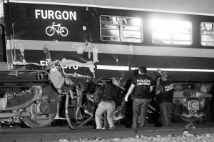 2月16日,救援人员在阿根廷布宜诺斯艾利斯省圣米格尔市附近发生的火车相撞事故现场工作。当天,距离阿根廷首都布宜诺斯艾利斯约30公里的圣米格尔市附近发生火车相撞事故,造成至少4人死亡,120人受伤,其中部分患者伤势严重。新华社发