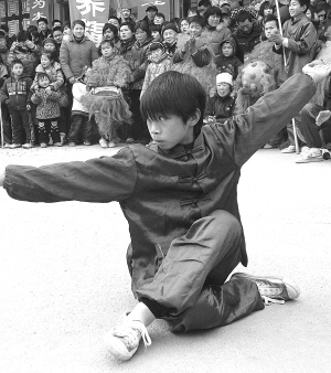 “好!好!好……”当日11时许,在商水县行政路,近50名“武林小子”,在高建国的带领下,为大家表演武术(如图):他们时而挥舞刀、枪、棍、鞭,时而表演八卦拳、醉拳、猴拳,一招一式都有板有眼。“没想到,这些孩子小小年纪竟能把武术练得这么好!”围观市民不禁连声称赞。
