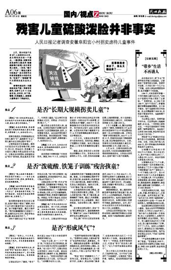 残害儿童硫酸泼脸并非事实
