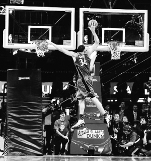 大家都关心格里芬练习了多少次飞车,对此他表示:“他们周四带来了车,我做了排练,飞车成功,然后加上巴朗做了几次,就这样了。”在被问到是否想过再次参加扣篮大赛,格里芬说:“我就知道你会问的。走着瞧吧,我还没想过以后怎么扣,也许明年用条船。”