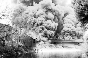 本报综合消息 2月23下午2时10分,江苏无锡鸿山街道后宅某化工厂发生火灾(上图),现场浓烟滚滚,目前无人员伤亡,经过两个多小时的扑救,火势已得到控制。