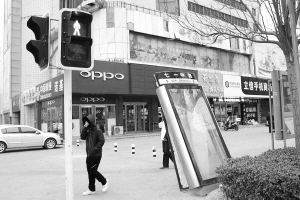 受冷空气影响, 昨天,我市迎来大风降温天气。这是记者在街头拍到的人们重拾冬装及大风吹倒路牌的镜头。