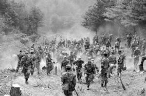 4月13日,部队官兵在开辟隔离带。4月12日中午,河北省秦皇岛市抚宁县和青龙县交界处突发森林火灾。截至记者发稿时,已有专业扑火人员1000多名和7100多名解放军、武警官兵、民兵预备役人员及2200多名干部群众和4架直升机相继投入扑火。目前,火情得到有效控制。新华社发