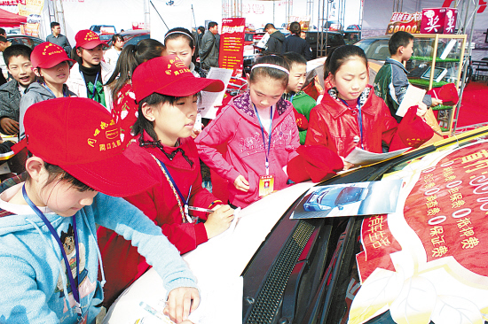 房车展上,小记者们围着一辆车在采访。晚报记者 宋风 摄