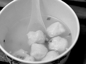 5块钱6个鱼丸,比原巷口的小些。鱼的味道不相上下。但是馅不是我喜欢的,馅里主要是油,肉只有一点点。