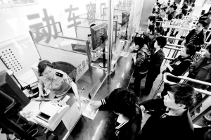 5月22日,旅客在沈阳火车站排队购买动车车票。6月1日起,全国动车组列车将实行购票实名制。5月22日8时开始,沈阳火车站预售6月1日动车组列车车票。新华社发