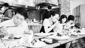 本报综合消息 曾在15分钟内吃下36个粽子的中国民间“大胃王”潘一中,6月21日在长沙与3位大胃美女斗吃(左图)。离婚后一直单身的潘一中希望,通过此举以食会友,找到拥有共同“好吃”爱好的人生伴侣。