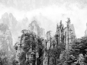 在张家界国家森林公园,可以登上张家界最大的凌空观景台黄石寨,山顶四周可俯瞰公园全景,漫步金鞭溪,溪水曲折,随山而流,穿行于深壑幽谷之间,心旷神怡。而在“袁家界”游览“天子山”景区,举目远眺,奇峰尽收眼底。下山行走“十里画廊”,峡谷两岸林木葱茏,奇峰异石,千姿百态,像一幅巨大的山水画卷。