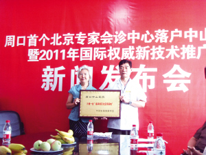 7月1日,周口首个北京专家会诊中心在周口中山医院成立。来自北京佑安医院、北京世纪坛医院、北京同仁医院的首批专家于1日至4日举行了大型疑难疾病会诊活动。会诊中心对中山医院给予全面技术支持,并建立长期合作关系,使百姓不但可以享受到北京资深专家的呵护,且免去了去北京就医的奔波和路费。另外,该会诊中心的专家将陆续到周口中山医院开展会诊活动。