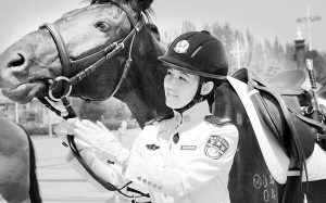 7月12日,包头市公安局蒙古族女骑警巴音娜和她的爱马在一起。当日,内蒙古包头女子骑警队首次亮相,引来游人和媒体的关注。这支女子骑警队于今年4月开始组建训练,共有女骑警10名,平均年龄23岁。今后,她们将主要承担指挥疏导交通、协助警务、大型活动礼仪警卫等任务。新华社发