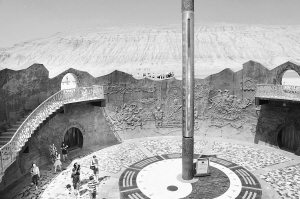 7月12日,游客在新疆吐鲁番火焰山景区游览,巨型金箍棒造型温度计显示的地表温度为76℃。当日17时,新疆吐鲁番地区气象部门发布高温红色预警。预计14日,吐鲁番市、托克逊县将出现45℃以上高温天气,鄯善县将出现40℃以上高温天气。新华社发